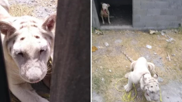 Un tigre blanco y un perro de raza pitbull fueron abandonados en el patio de una iglesia de Matamoros, Tamaulipas, por lo que habitantes de la zona llamaron al 911 para reportar el hecho, informó El Sol de México.