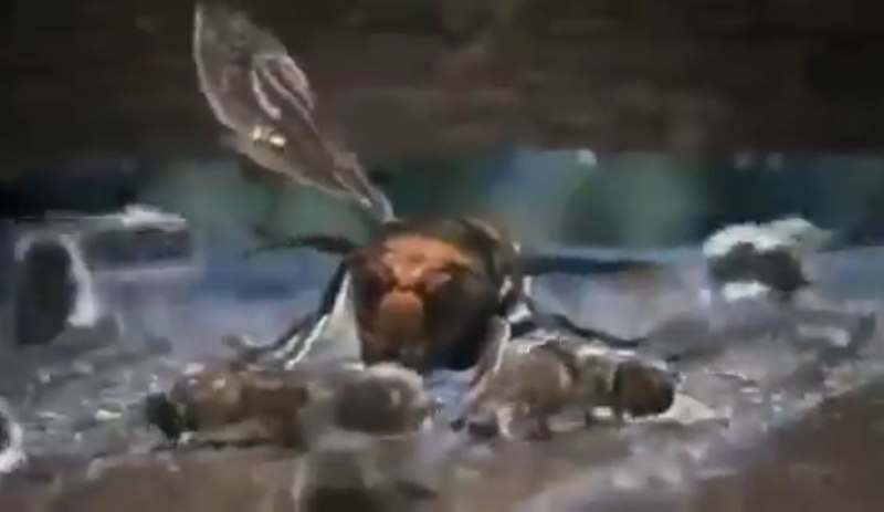 Sin embargo, un ataque masivo de abejas es mortal para un enorme avispón explorador