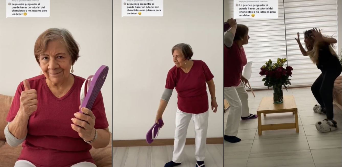 En la grabación se puede ver cómo la abuelita de Maru describe paso a paso cómo lanzar la chancla con estilo.