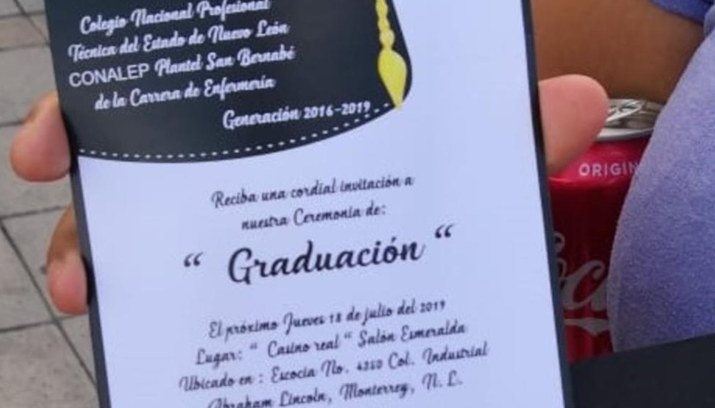 Un grupo de estudiantes de la carrera de enfermería del Conalep San Bernabé, en Monterrey, Nuevo León, fue presuntamente defraudado por una profesora que no habría pagado el salón de eventos para su graduación.