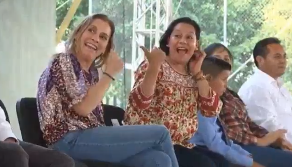 AMLO le llama la atención a su esposa y a la secretaria de Bienestar por estar platicando durante evento en SLP