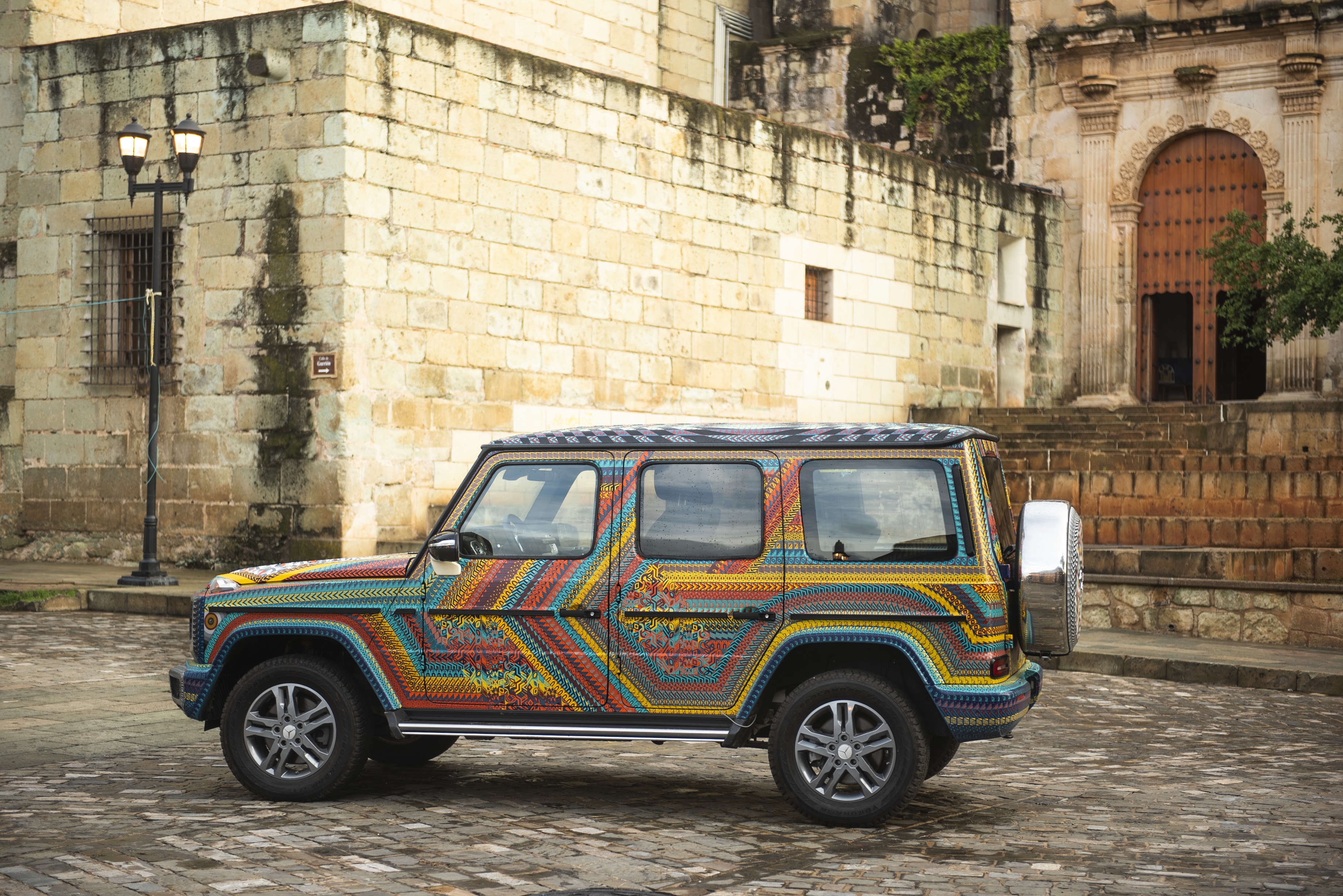 La empresa alemana fabricantes de vehículos de lujo, Mercedes-Benz, difundió en redes sociales imágenes de su nueva camioneta todo terreno ClaseG, misma que fue intervenida por dos artesanos de Oaxaca.