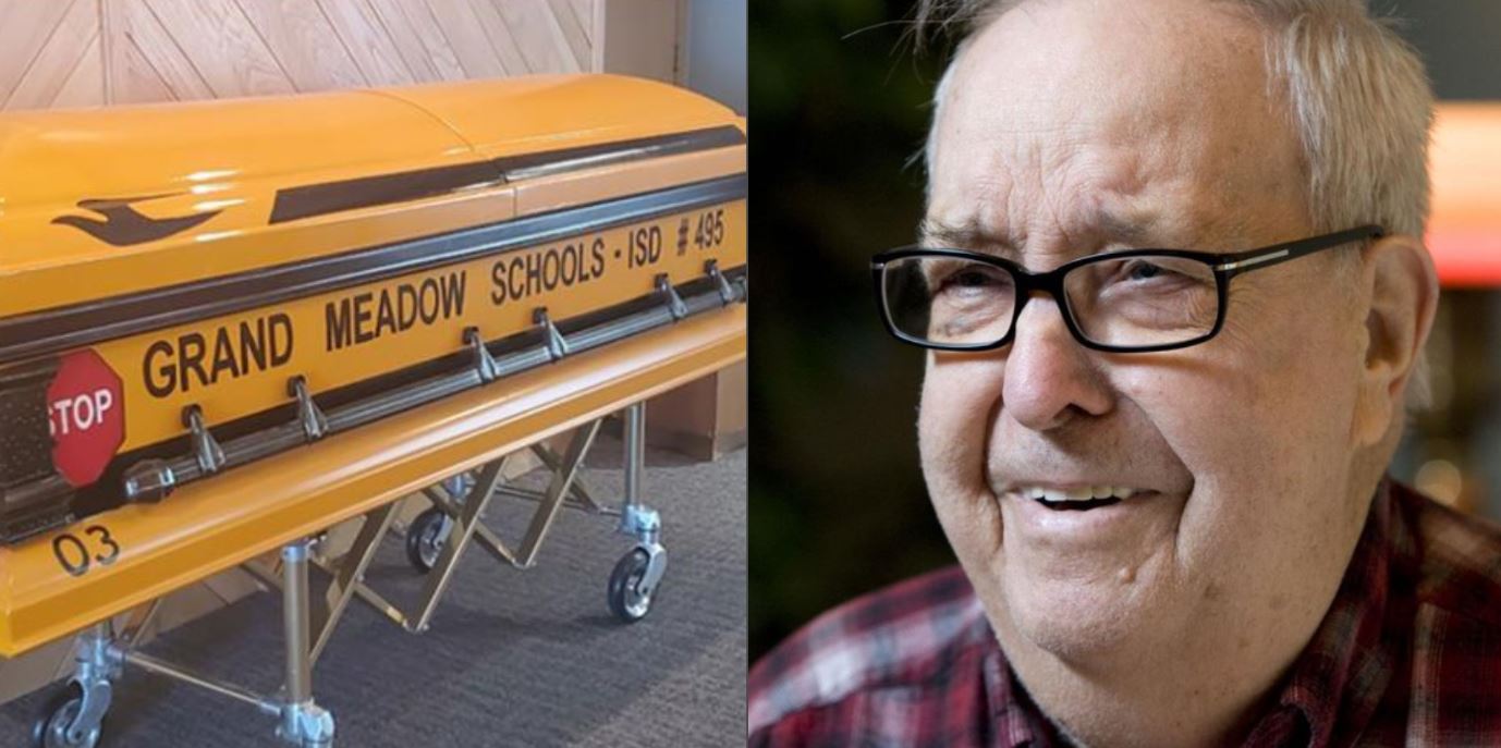Glen David es un hombre originario de Minnesota, EU, que trabajó durante 55 años como conductor de un autobús escolar en Grand Meadow, por lo que al morir sus amigos y conocidos decidieron rendirle un sentido homenaje al diseñar un ataúd personalizado como el autobús que manejó por mucho tiempo.