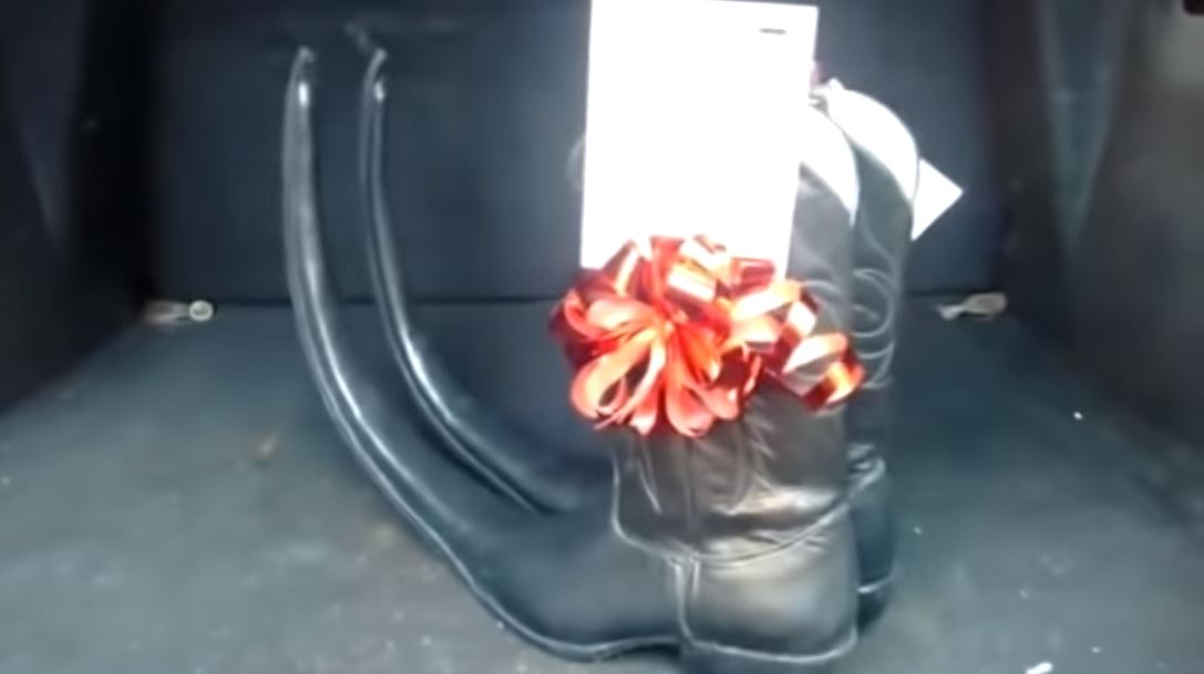 El hombre regaló botas estilo tribaleras al mandatario con una tarjeta donde le pedía “patear con ellas la corrupción”