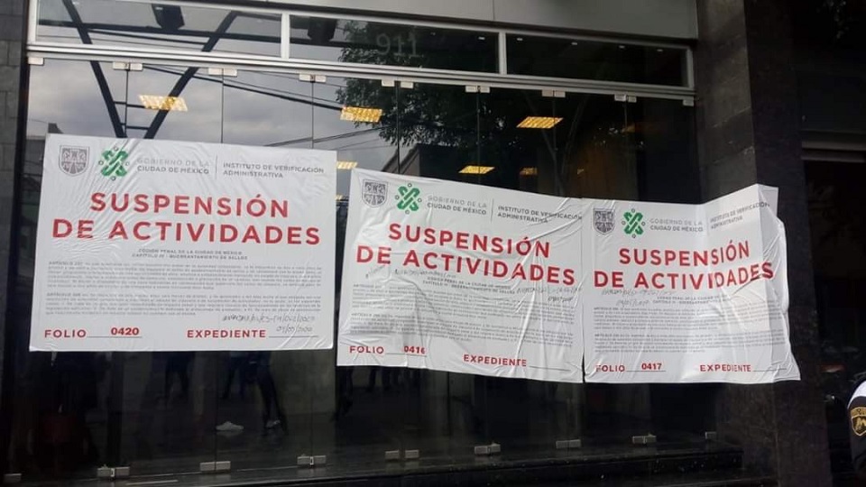 A pesar de que fueron colocados sellos de “suspensión de actividades”, en las entradas del edificio ubicado en el número 911 de la calle Rascarrabias, en la colonia Vértiz Narvarte, demarcación Benito Juárez, un trabajador comentó a la revista Proceso que no cerraron la puerta ubicada en el número 913, donde entran y salen empleados.