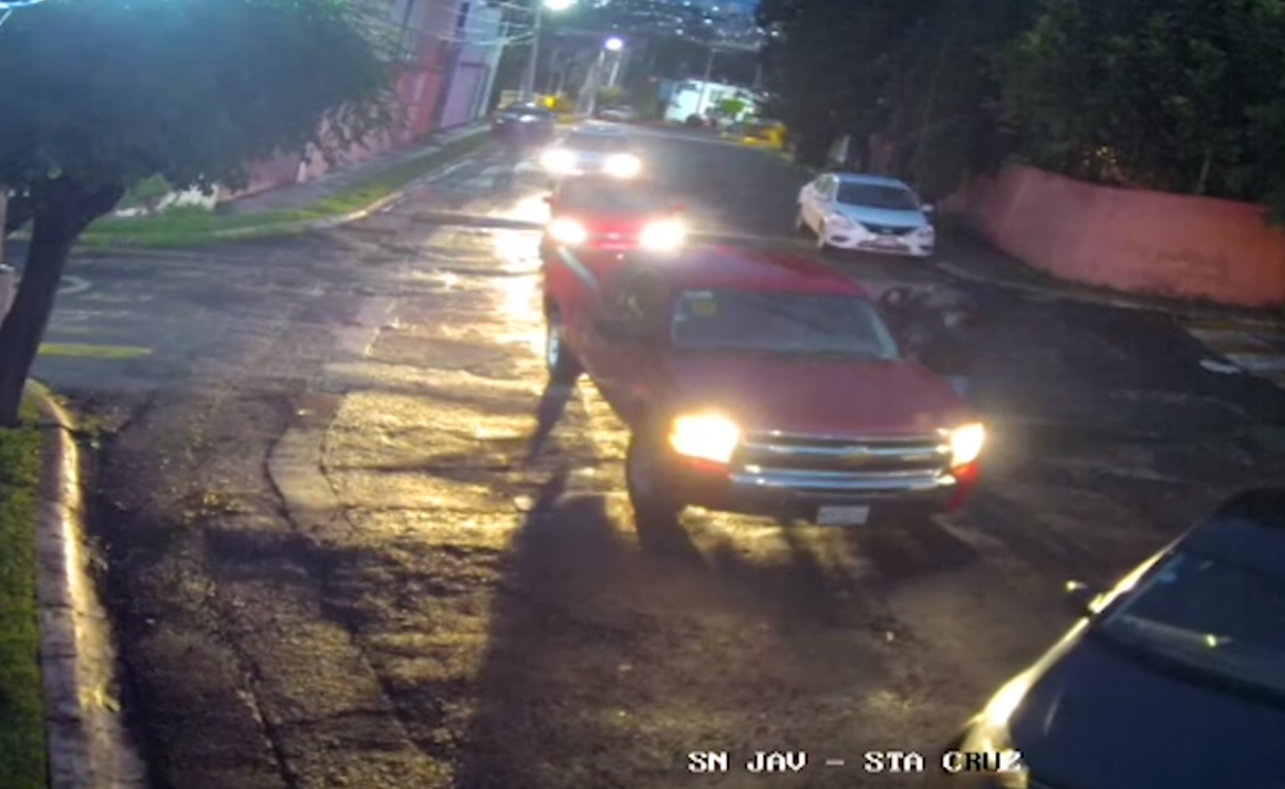 En la videograbación se observan a cinco sujetos en dos automóviles, donde de forma planeada esperan a una camioneta de color rojo para asaltar al conductor. No obstante se ve que uno de los vehículos le impide el paso mientras dos personas que iban caminando amenazan al conductor a punta de pistola.