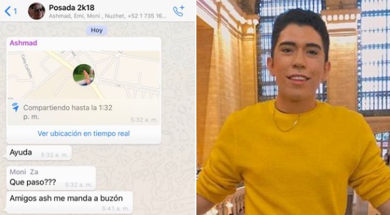 Durante la madrugada de este domingo, se reportó la desaparición de un joven llamado Ashmad Gesem Alfredo Pineda Romero, de 21 años, quien envió un mensaje de ayuda por Whatsapp a su familia junto con su ubicación.