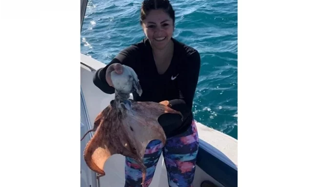La legisladora dijo que la captura del pulpo fue un error, pues se trabó en su anzuelo durante su pesca deportiva del lunes pasado.