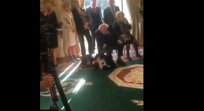 Michael Higgins se encontraba en una reunión por el Día Internacional de la Mujer cuando su perro lo buscó