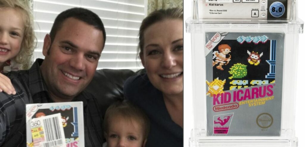Se trata del juego “Kid Icarus”, de Nintendo, el cual fue lanzado en 1987 y es considerado un clásico de culto. El cartucho se encuentra en perfectas condiciones, aún está envuelto en su celofán original y tiene el ticket de compra de 38,45 dólares.