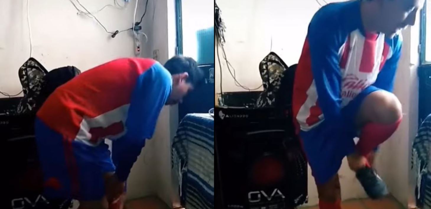 “No seas imprudente, Ramiro”, se escucha a la joven decir, mientras él se coloca su uniforme para salir a jugar un partido de fútbol.