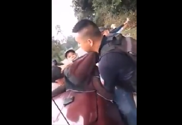 Supuestos compañeros de la víctima intentan defenderlo, no obstante, los oficiales los detienen y evitan que el joven no sea liberado.
