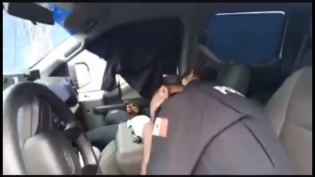 Los agentes evidenciados, un hombre y una mujer, se encontraban al interior de la unidad 622 de la Secretaría de Seguridad Pública municipal, de la que ambos ya fueron cesados.