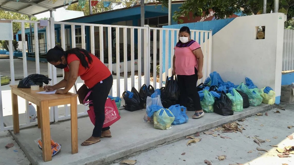 Un grupo de extranjeros residentes de Puerto Escondido, Oaxaca, donaron despensas a las familias de 54 niños que forman parte del Centro de Atención Múltiple (CAM) número 20, donde eran atendidos menores con capacidades de aprendizaje diferente.