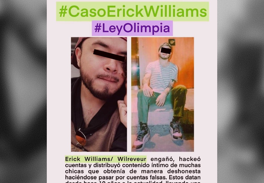 La semana pasada, Erick Williams aceptó en un mensaje en Facebook, que él era quien fingía ser mujer con identidades robadas para conseguir fotografías íntimas de mujeres, esta confesión fue grabada por quien fuera su pareja.