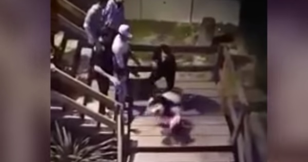 Un guardia de seguridad fue captado en video mientras empuja a una mujer por las escaleras, provocándole una grave fractura en una pierna.