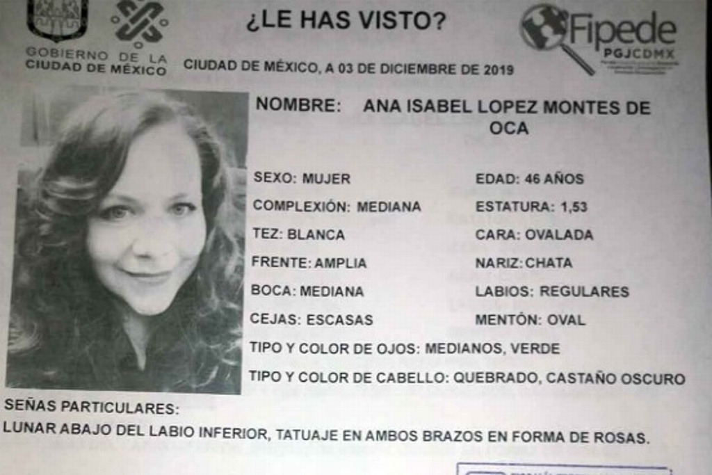 Ana Isabel López Montes de Oca, de 46 años de edad, fue localizada sin vida después de tres días de búsqueda, señalaron sus familiares.