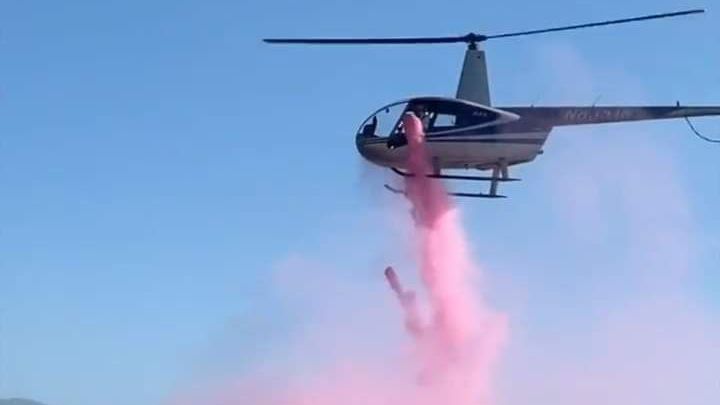 La aeronave lanzó polvo y papel rosa, momento en que los presentes gritan y se abrazan, según información referida por el portal Zeta Tijuana.