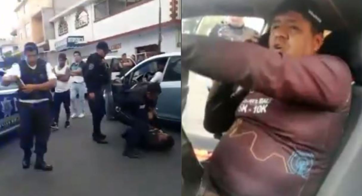 “Estoy aquí con la policía, me quieren pegar y me están pegando, me empezaron a insultar, me mentó la madre un policía y de ahí me detuvieron, sabes qué que me quieren bajar a golpes”, dijo el hombre.
