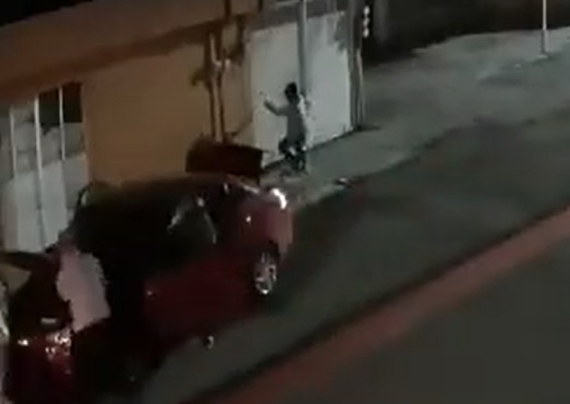 Las imágenes muestran que cuando los dueños del vehículo se percatan del robo, un hombre intentan enfrentar a los delincuentes, sin embargo, lo amenazan y logran escapar.