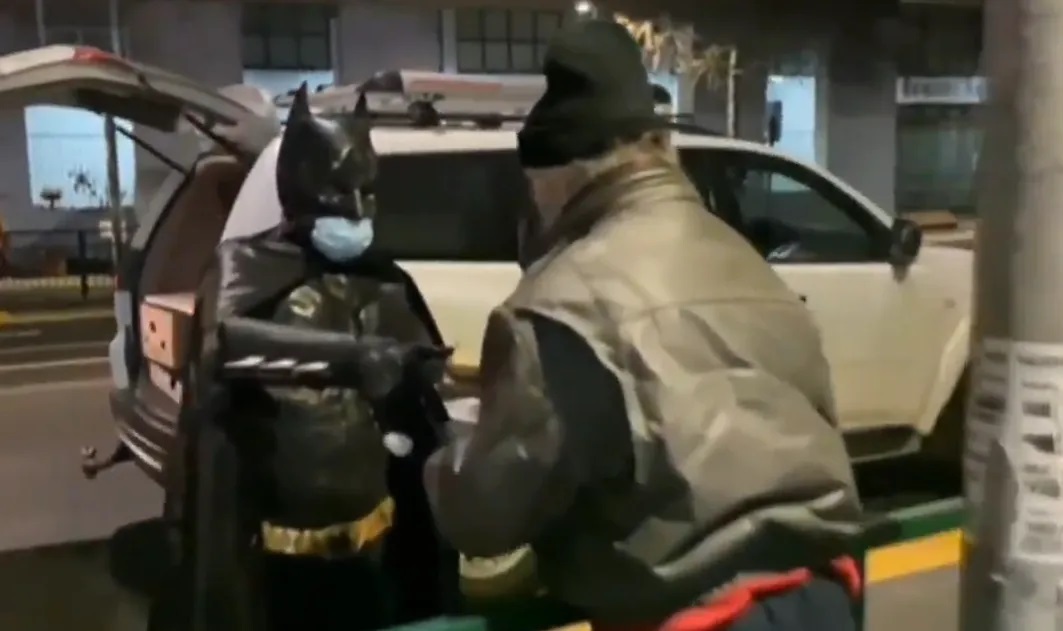 Desde hace más de un mes, este Batman solidario reparte comida a los más necesitados