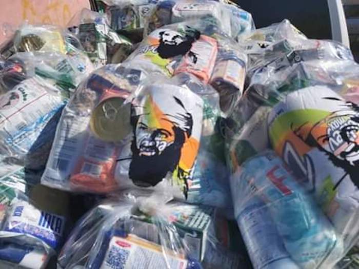 En algunas imágenes se aprecia que las bolsas con alimentos tienen la cara de Bin Laden