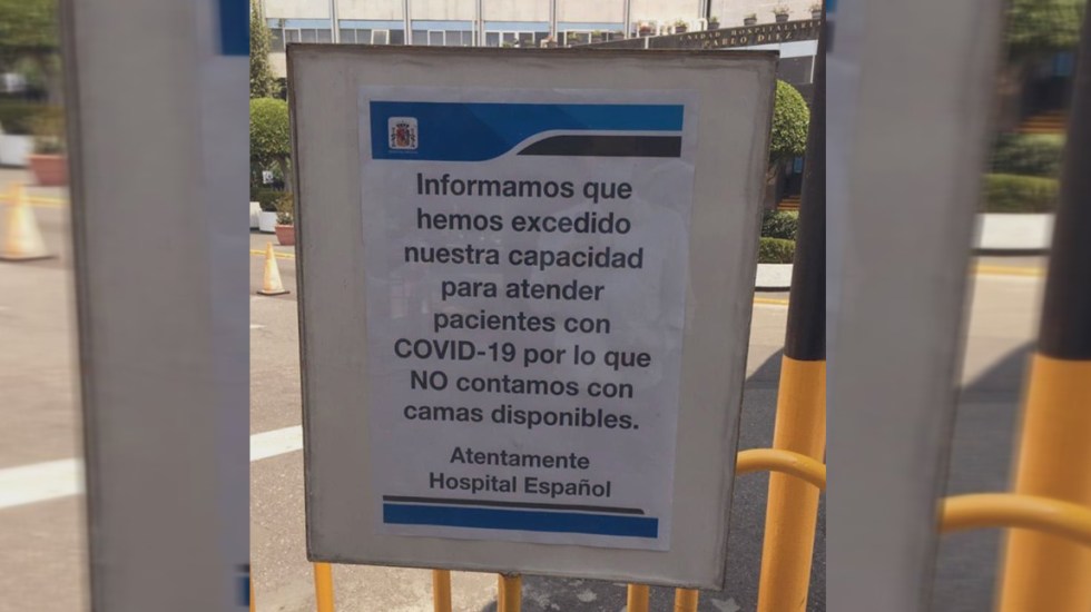 “Informamos que hemos excedido nuestra capacidad para atender pacientes con Covid-19, por lo que NO contamos con camas disponibles”, se indicó mediante un letrero.