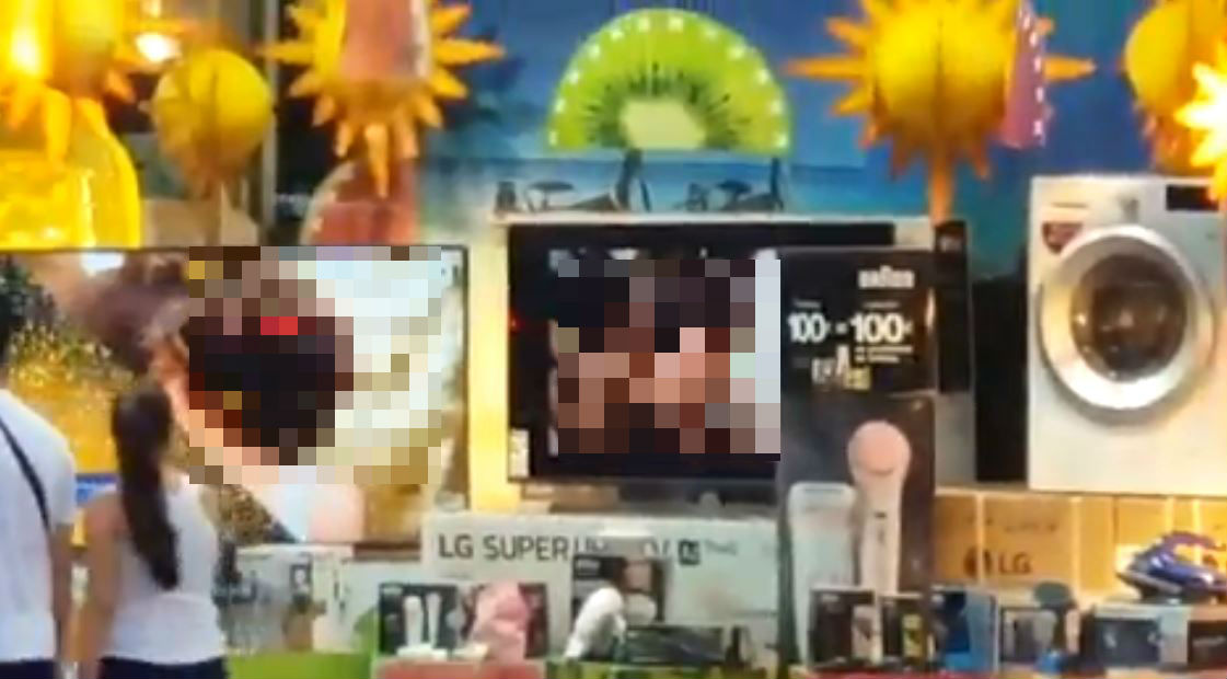 En una tienda Milar de Lucena, en Andalucía, España, tres jóvenes manipularon el contenido de una televisión desde su teléfono celular para emitir imágenes de una película pornográfica.