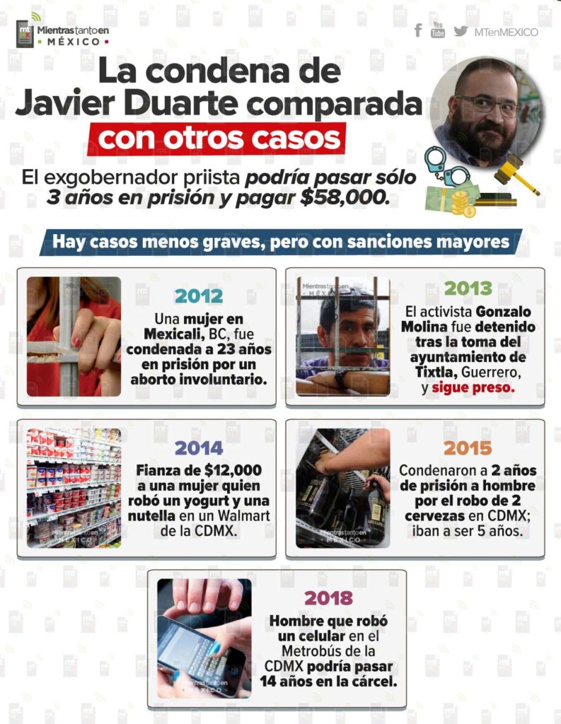En todos estos casos, los ciudadanos incurrieron en delitos menores; sin embargo, esto no impidió que obtuvieran penas que superan por mucho las otorgadas a Javier Duarte.