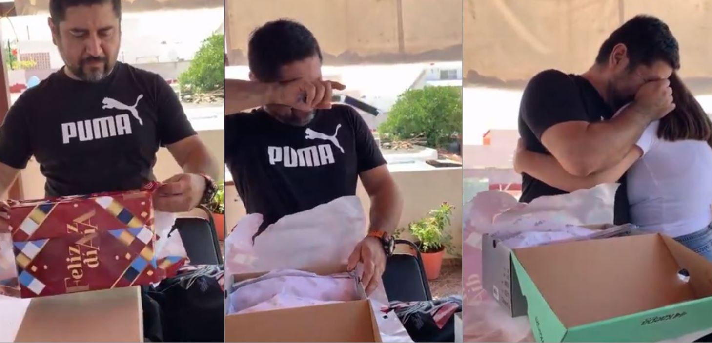 En cuanto el hombre vio su regalo, no pudo contener el llanto y agradeció a su hija por haberle comprado algo que tanto deseaba, destacó TV Azteca.
