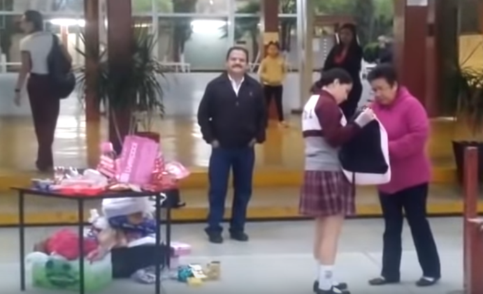 A través de redes sociales se aprecia cuando varios profesores revisan las mochilas de sus estudiantes en la entrada de la escuela, y las mesas en donde colocan los regalos.