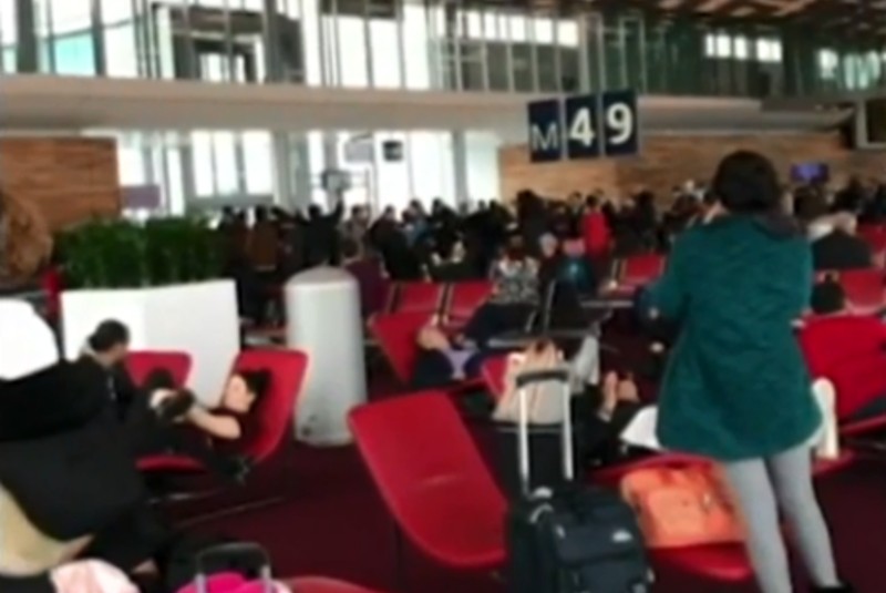 Varios pasajeros mexicanos que se encontraban en el aeropuerto Charles de Gaulle, París, Francia, cantaron el tema “Cielito Lindo”, mientras esperaban su vuelo que demoró ante la contingencia por el coronavirus para viajar de regreso a la Ciudad de México.