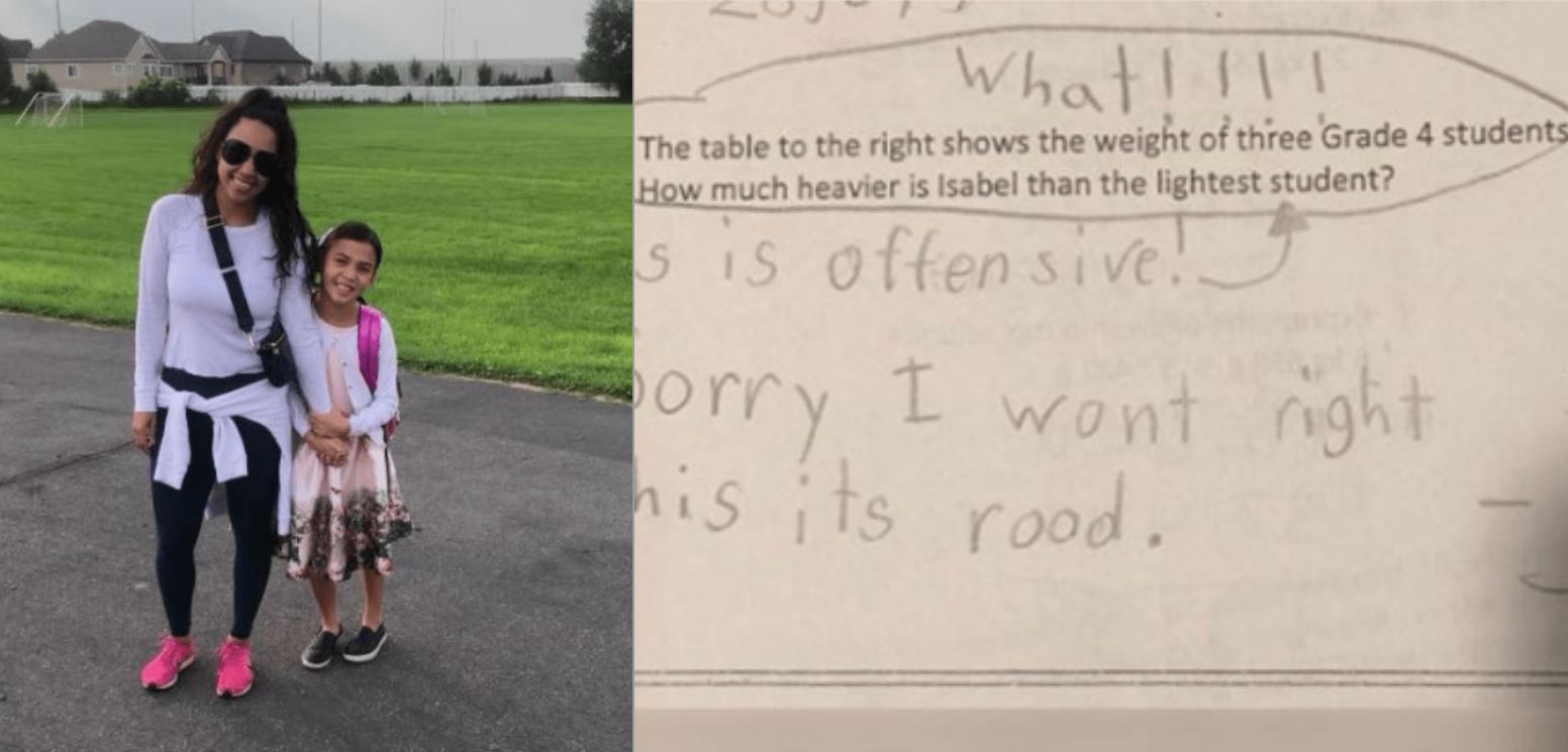 Los hechos fueron descubiertos por Nahomi Pacheco, madre de la menor, que al revisar el cuaderno de su hija notó que no contestó uno de los ejercicios que consistía en comparar el peso de tres estudiantes, por lo que se limitó a contestar: “¡¡¡QUÉ!!! Esto es ofensivo. Lo siento, no voy a resolver esto, no es bueno”.