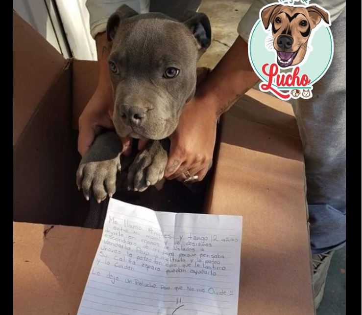 “Me llamo Andrés y tengo 12 años, entre mi mami y yo decidimos dejarlo en manos de ustedes a escondidas de mi papá porque pensaba venderlo pero lo maltrata y lo patea. Una vez lo pateó tan duro que le lastimó su colita, espero puedan ayudarlo y lo cuiden. Le dejé un peluche para que no me olvide”, escribió el pequeño.