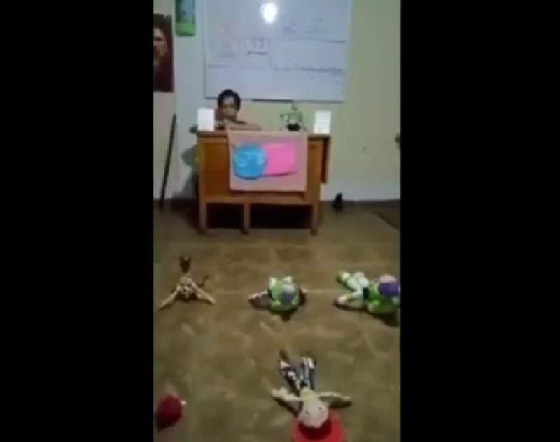 En el clip se escucha que el niño presenta los casos de coronavirus en el estado de Guanajuato, en una conferencia al estilo del doctor en epidemiología, de hecho, Ángel reemplaza al director de la Secretaría de Salud estatal y a la prensa con un personaje de la película “Toy Story”.