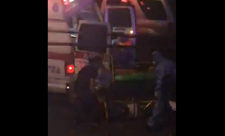 Al intentar meterlo a la ambulancia, el paciente rueda y azota contra el piso