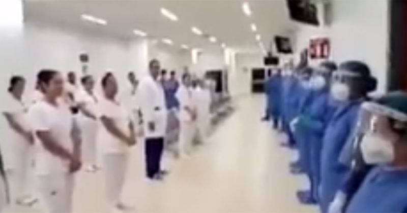 El momento en que un grupo de médicos y enfermeras se animó entre sí cantando el Himno Nacional Mexicano se viralizó en redes sociales.