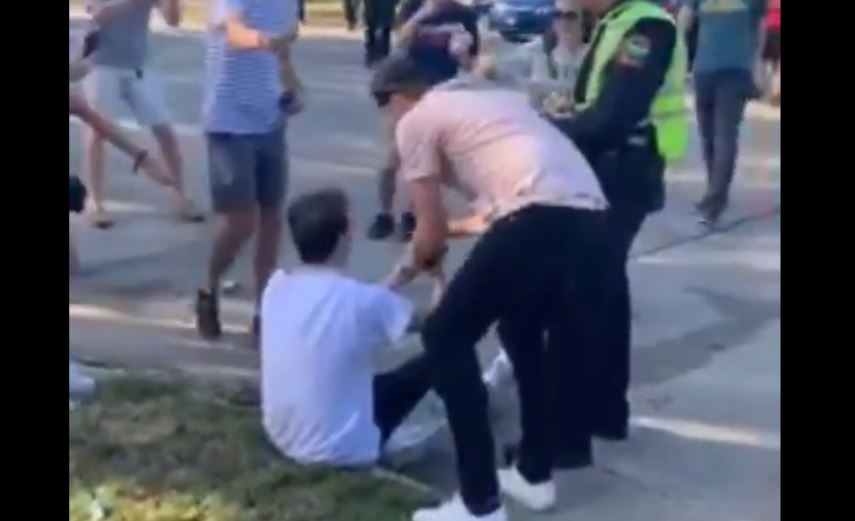 Al ver que la policía lo había multado, se acercaron para ayudarle