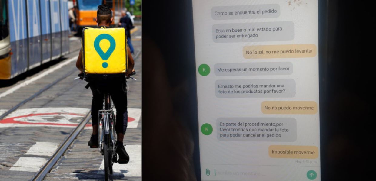 “¿Cómo se encuentra el pedido?”, preguntó la compañía Glovo a trabajador llamado Ernesto Floridia, a través de un chat que fue difundido por la periodista Yanina Ortero en redes sociales.