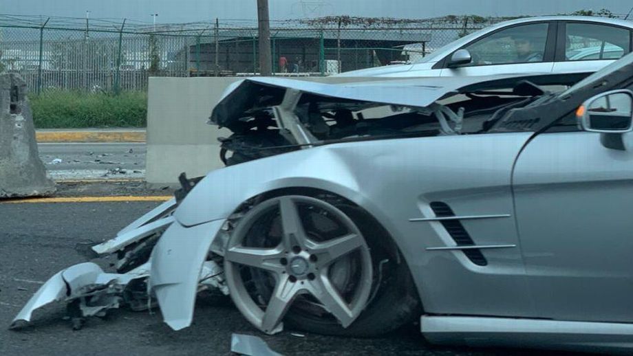 En redes sociales fue publicada una imagen donde se observa el lujoso vehículo de Ferretti, tras el accidente que involucró a otro auto, pues ambos se impactaron contra un muro de contención.