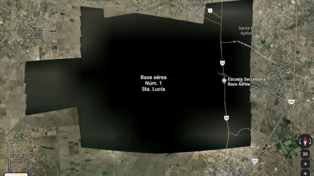 En la plataforma de Google Earth no es posible visualizar la Base Aérea de Santa Lucía, en la que se pretende construir el nuevo aeropuerto internacional “Felipe Ángeles”.