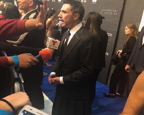 El también diputado de Morena arribó a la alfombra azul de camisa, corbata, saco y una falda larga de color negro la noche de ayer en el Teatro Telcel.
