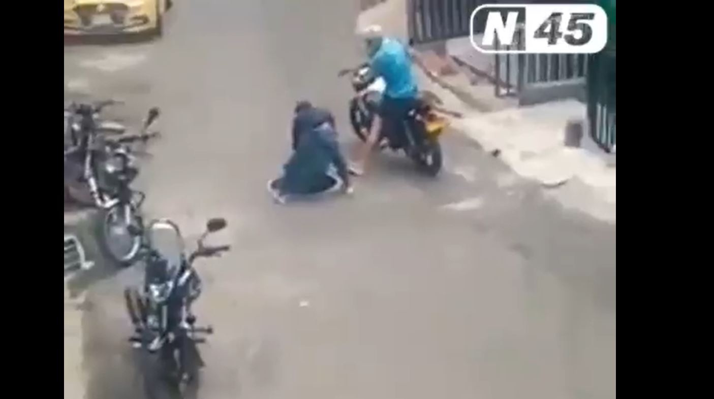 De inmediato se incorpora en el pavimento y aunque camina con dificultad, consumó el robo.