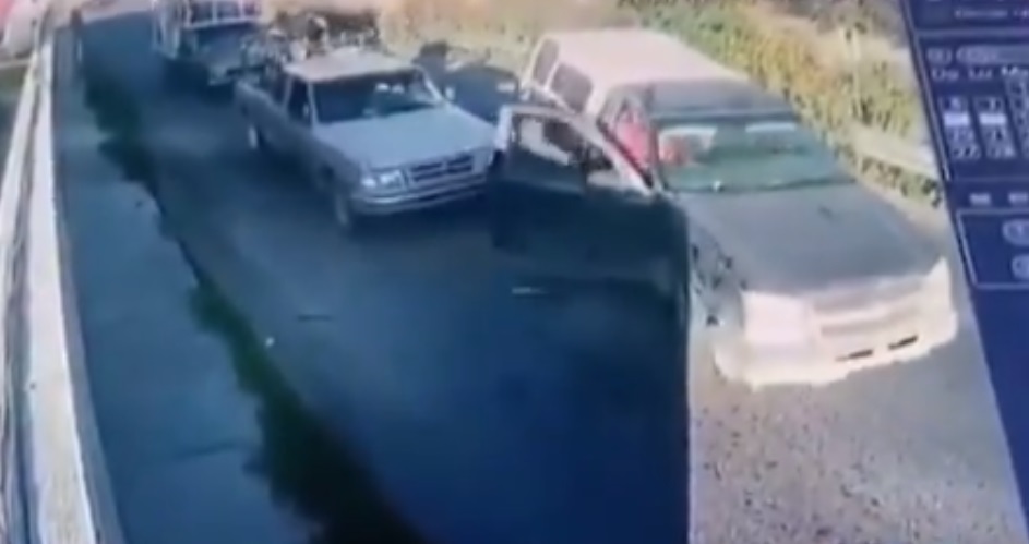 En el clip se aprecia que un comando intercepta el vehículo, baja a sus tripulantes para quitarles sus unidades y los obliga a abordar otro auto, a la altura de barrio San Antonio. Asimismo se observa que uno de los delincuentes aborda una de las camionetas para robarla, informó el diario Excélsior.
