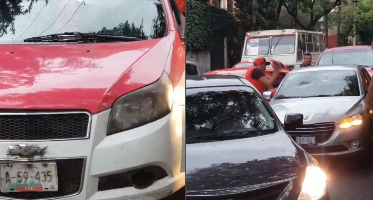 En redes sociales se difundió un video que muestra el momento en el que un taxista baja de su auto para romper el parabrisas de otro conductor que lo chocó e intentó darse a la fuga.