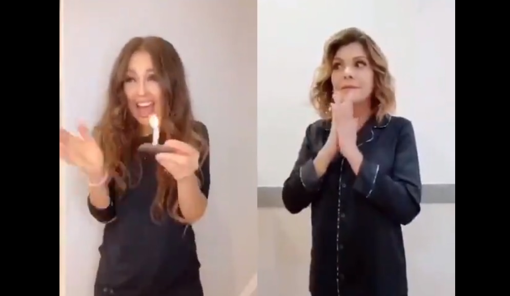 Las actrices Thalía e Itatí Cantoral recrearon el video viral de dos hermanas que se pelean durante una fiesta de cumpleaños.