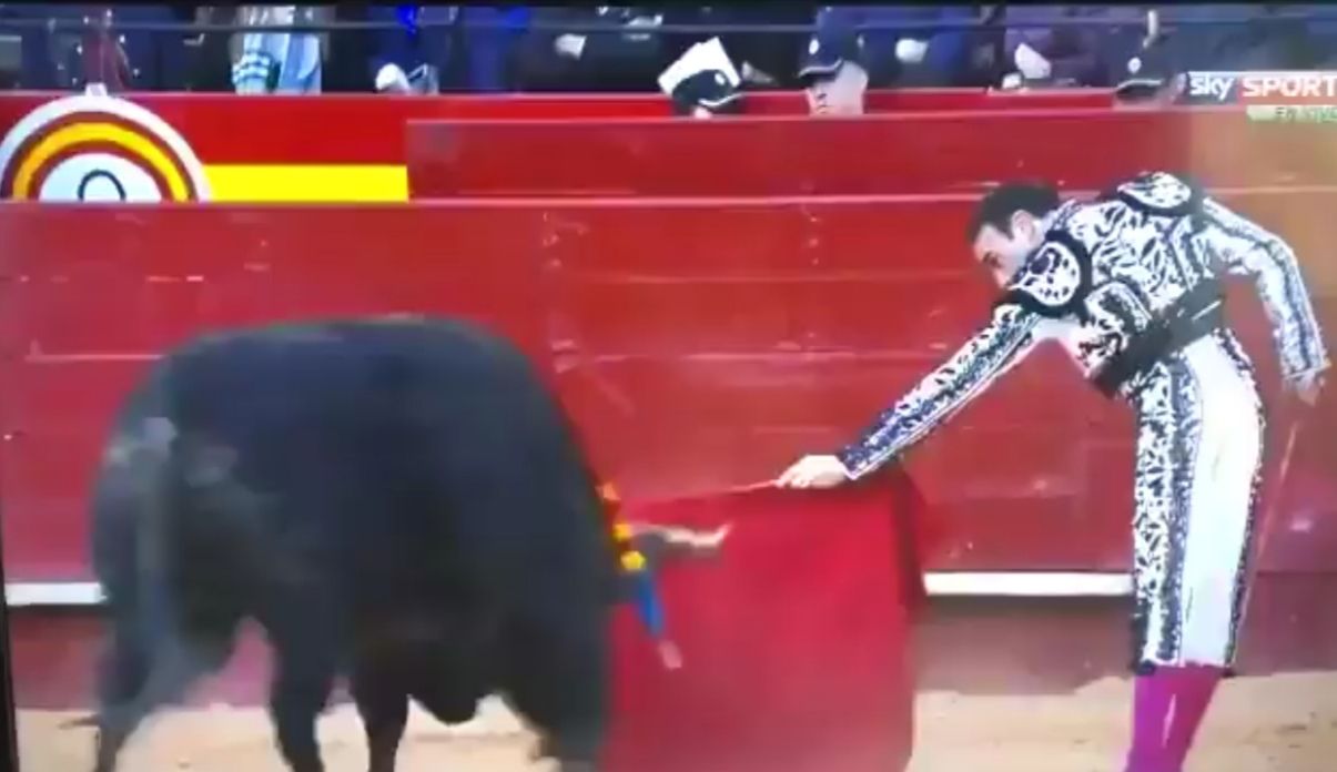 Antes de darle la estocada final, el toro lo enganchó con los cuernos y lo levantó de los muslos