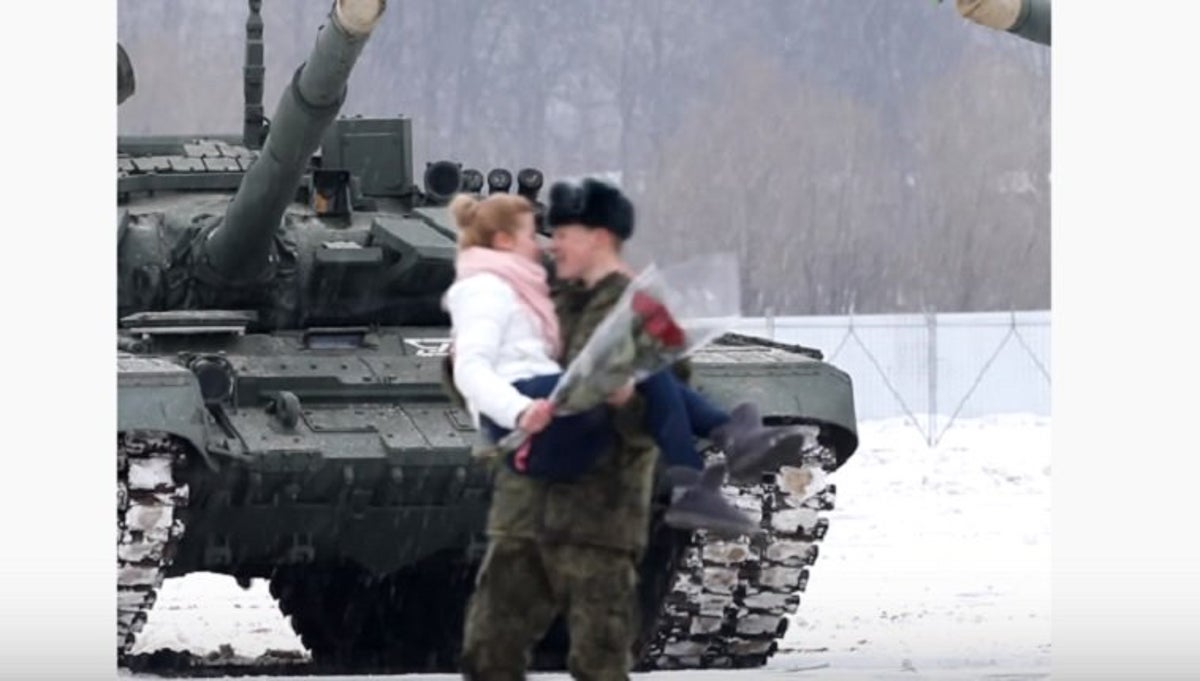 A las afueras de Moscú, Rusia, un militar se dio a la tarea de construir un corazón con 16 vehículos blindados T-72, para pedirle matrimonio a su novia.