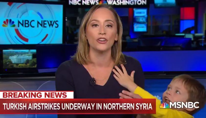 La presentadora de noticias de la cadena estadounidense NBC Courtney Kube fue interrumpida al aire por su hijo de cuatro años, mientras informaba sobre la ofensiva militar de Turquía contra milicias kurdas al norte de Siria.