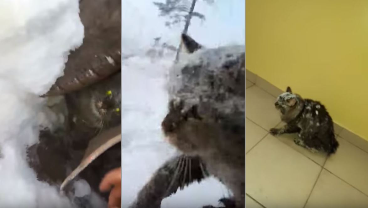 Un niño y su madre con ayuda de agua caliente lograron descongelar al gato y lo pusieron a salvo en casa